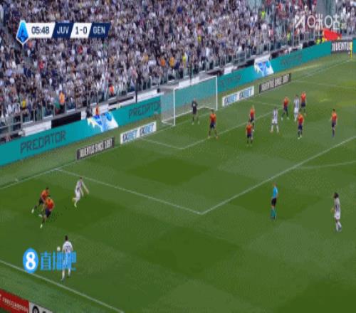 第4分钟,伊尔迪兹左路传中,皮球被顶出来,弧顶位置凯夫伦·图拉姆头球一点,凯利头球接力,布雷默门前第三次头球接力将球打进!尤文图斯1-0领先热那亚↓