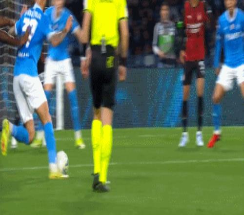 第23分钟,斯皮纳佐拉起脚射门,皮球偏出右侧立柱